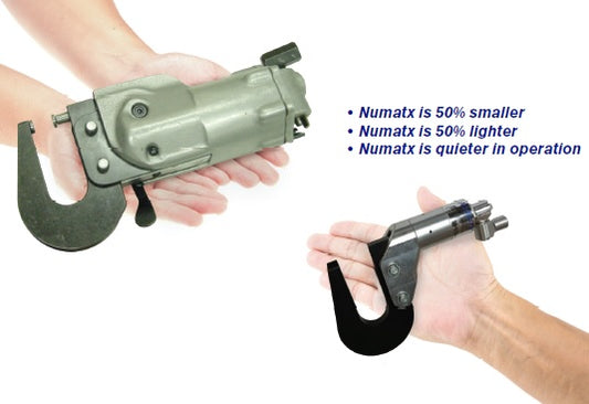 The patented pneudraulic riveting system from Numatx sets a new benchmark in aerospace and industrial compression riveting. Numatx riveters redefine ergonomic excellence, outperforming traditional air-powered counterparts. Compact, lightweight, and quieter, Numatx riveters offer unparalleled versatility, ensuring ease of use for operators.Â